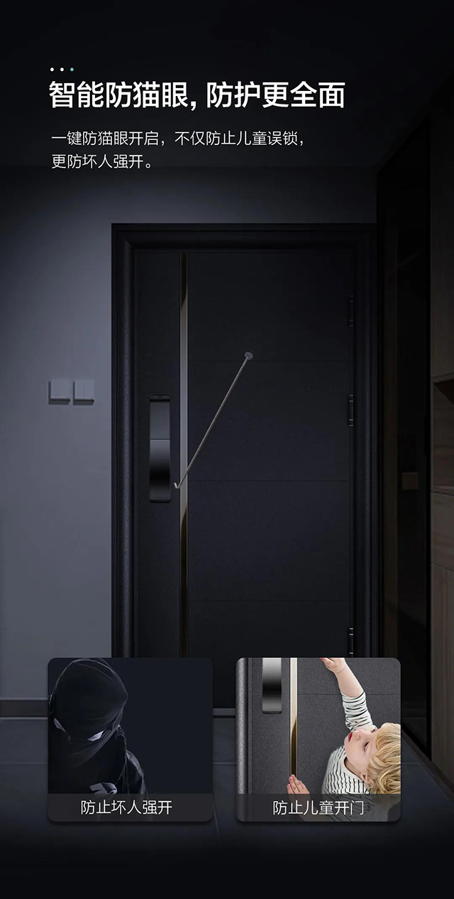 综合上采用了运动感的设计,将指模激活地区潜藏的在门执手后背,不只不美观还卫生。