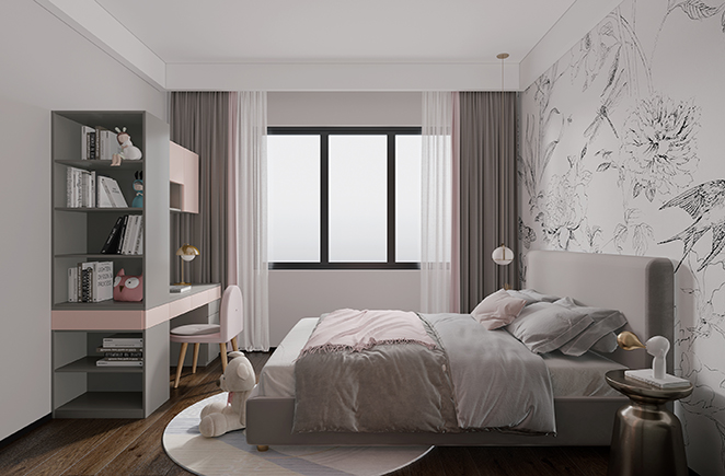 结合运动风格印花图案墙画,和诣又尤为,比较有feel。作为一个小孩房也颇有童真童趣,就如将不一样冠美的无素存放同一条空间,飘扬中外古今契合的乐韵。