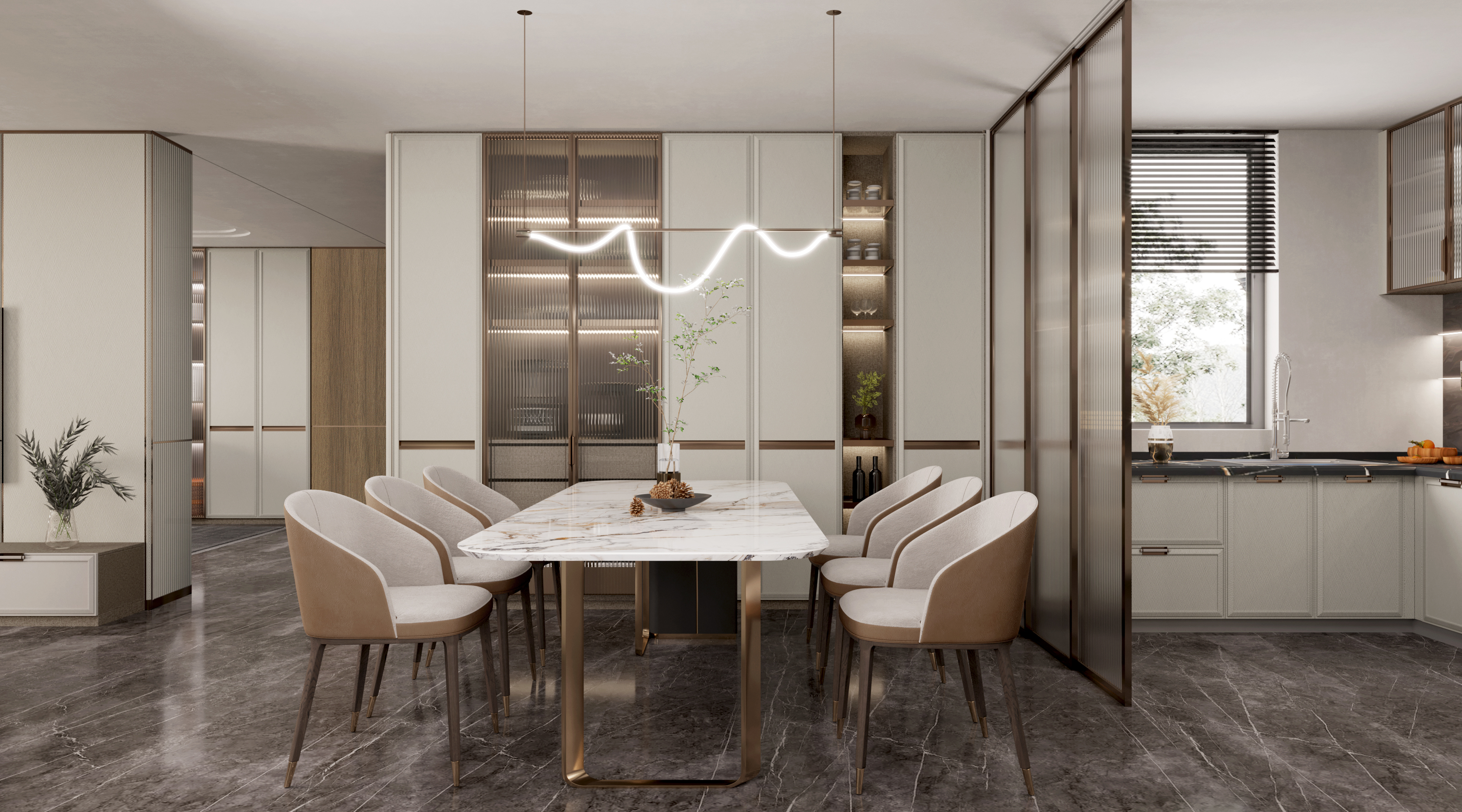 现化极简风格,采用了最高级轻轻的莫兰迪色系亮色,展示亮堂清澈的室内装修范围。
