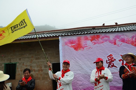 作为本站点的发起人,成都顶固总经理郭清志先生身体力行,从前期推荐、实地考察到奠基典礼,给予了最大力度的支持。典礼现场,从顶固义工团团长林新达先生手中接过爱心旗帜,郭总表示:“爱心旗帜代表的是一份义不容辞的责任。一年一所希望小学是顶固家人共同的承诺,如今也已经是第八所了,东升国际 已经坚持了八年,还会继续坚持下去。”