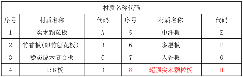 ▲材料面料代碼表,如下图所示材料面料代碼为B,即“竹香板”
