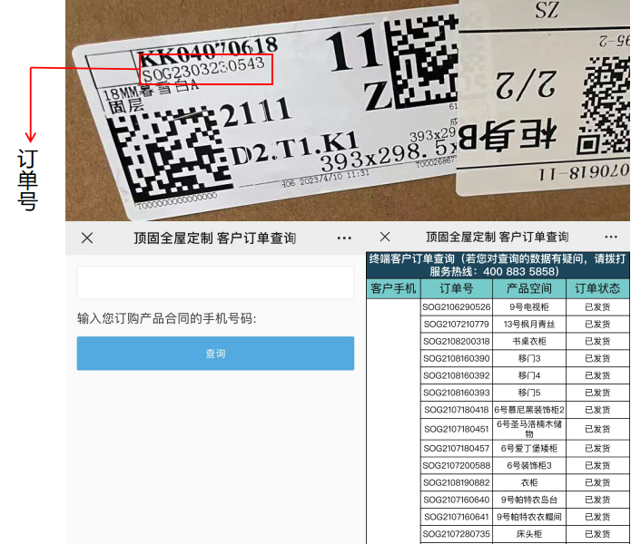 ▲家具板材和货品承彩盒上的“顶固身份证”