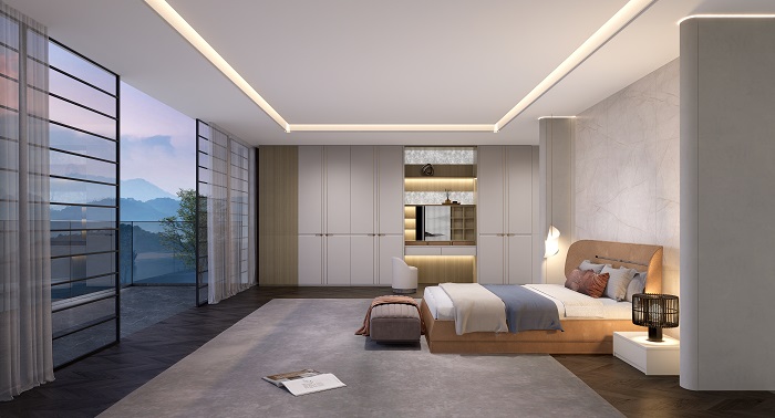 以如今的设计构思語言表示玄幻意象,函数的凹凸性素、多材质原料相互融成,提炼出雅居区域的禅韵之美,拥有1立方米清新淡雅别具特色之所。